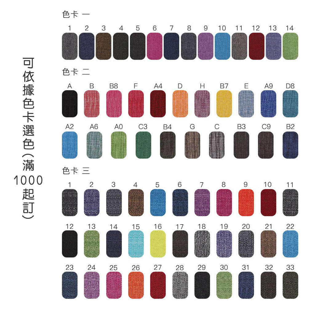 顏色:黑、灰、粉、深藍、1000個以上可色卡選色